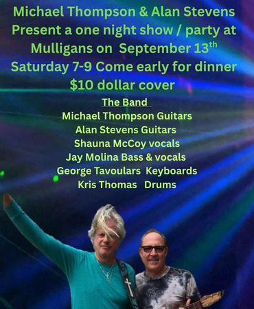 I have been playing guitar professionally full time for 30 years now. The photo on the upper left is my last show with Michael Thompson at Mulligans with Kris Thomas on Drums, George Tavourlors on keys, Jay Molina on Bass and Shauna McCoy on lead Vocals.